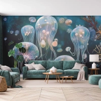 Tapet Autoadeziv Deluxe Sticker - Balul subacvatic - meduze, Animale, Adâncimi - 250x175 cm