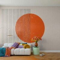 Tapet Standard Eco - Soare portocaliu într-un stil minimalist - 100x70cm - Întotdeauna soarele - Decorațiune modernă pentru perete pentru living și dormitor ARTTOR