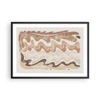 Tablou pe sticlă - Valuri bej și maro într-o compoziție abstractă - 70x50cm - Energie bună - emoții bune - Decorațiune modernă pentru perete pentru living și dormitor ARTTOR