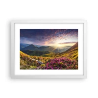 Poster în ramă albă - Prospețimea unei dimineți de munte - 40x30 cm
