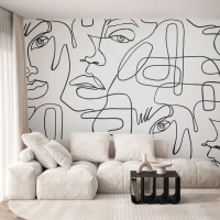 Tapet Standard Eco - Contururi faciale negre desenate într-o singură linie continuă - 100x70cm - Într-o încurcătură de emoții - Decorațiune modernă pentru perete pentru living și dormitor ARTTOR