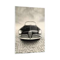 Poster în ramă neagră - Partea din față a unei mașini clasice pe o stradă pietruită - 50x70cm - Și cum să nu mă iubești? - Decorațiune modernă pentru perete pentru living și dormitor ARTTOR