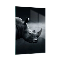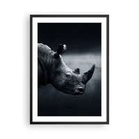 Poster în ramă neagră - Portret alb-negru al unui rinocer pe un fundal întunecat - 50x70cm - Profil drept - Decorațiune modernă pentru perete pentru living și dormitor ARTTOR