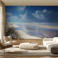 Tapet Standard Eco - O plajă largă cu nisip sub un cer albastru - 100x70cm - Vacanță în paradis - Decorațiune modernă pentru perete pentru living și dormitor ARTTOR
