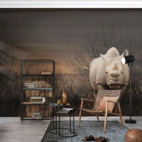 Tapet Autoadeziv Deluxe Sticker - Albul împotriva naturii - Rinocer, Animale, Africa - 200x140 cm