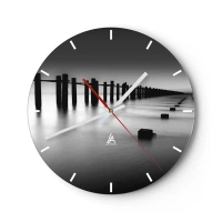 Ceas de perete - Ceas pe sticlă - Un dig alb-negru care duce în depărtare peste ape calme - 30x30cm - În depărtare gri în ceață - Decorațiune modernă pentru perete pentru living, bucătărie și dormitor ARTTOR