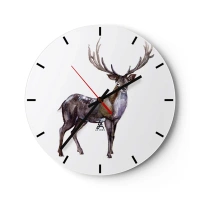 Ceas de perete - Ceas pe sticlă - Imagine în acuarelă a unui cerb - 30x30cm - Regele pustietății nordice - Decorațiune modernă pentru perete pentru living, bucătărie și dormitor ARTTOR