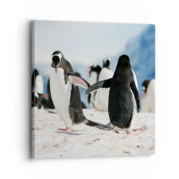 Ceas de perete - Ceas pe sticlă - Pinguini în zăpadă într-un peisaj arctic - 30x30cm - Dansul în zăpadă - Decorațiune modernă pentru perete pentru living, bucătărie și dormitor ARTTOR
