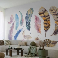 Tapet Premium Sand - Ușoare și colorate - Pene de păsări, Păsări, Grafică - 400x280 cm