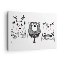 Tablou pe pânză Canvas - Trei urși amuzanți într-un stil minimalist - 70x50cm - Ursuleț, urs - Decorațiune modernă pentru perete pentru living și dormitor ARTTOR