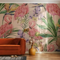 Tapet Premium Sand - Balet floral roz - Pasăre, Flamingo, Junglă - 400x280 cm