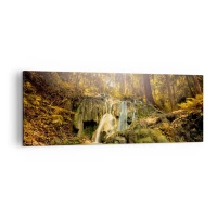 Tablou pe pânză - Cascada de pădure în verde - 140x50 cm
