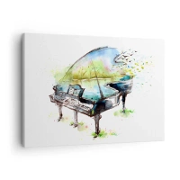 Tablou pe pânză Canvas - Pictură artistică în acuarelă a unui pian cu natura în fundal - 70x50cm - Încântat de muzică - Decorațiune modernă pentru perete pentru living și dormitor ARTTOR