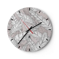 Ceas de perete - Ceas pe sticlă - Frunze de bananier alb-negru pe un fundal deschis - 30x30cm - Vijelie cu pene - Decorațiune modernă pentru perete pentru living, bucătărie și dormitor ARTTOR