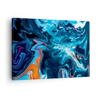 Tablou pe pânză Canvas - Un model abstract în nuanțe de albastru cu accente portocalii. - 70x50cm - Călătorie spre centrul cerului - Decorațiune modernă pentru perete pentru living și dormitor ARTTOR