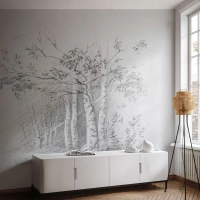 Tapet Standard Eco - Schiță în creion a mesteacănilor în pădure - 100x70cm - Lumina pădurii de mesteceni - Decorațiune modernă pentru perete pentru living și dormitor ARTTOR