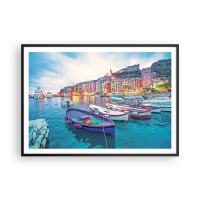 Poster în ramă neagră - O seară plină de culoare în port - 100x70 cm