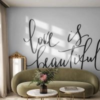 Tapet Standard Eco - Citatul „Dragostea este frumoasă” scris de mână elegant pe fundal alb - 100x70cm - Citiți și repetați - Decorațiune modernă pentru perete pentru living și dormitor ARTTOR