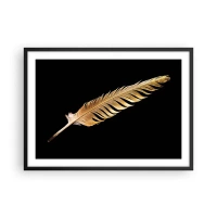 Poster în ramă neagră - Pană aurie perfectă - 70x50 cm