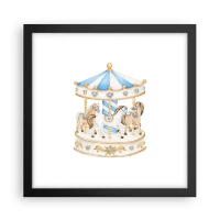 Ceas de perete - Ceas pe sticlă - Un carusel cu cai în nuanțe pastelate de albastru și bej - 30x30cm - Copilărie dulce - Decorațiune modernă pentru perete pentru living, bucătărie și dormitor ARTTOR