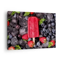 Tablou pe pânză Canvas - Înghețată roșie înconjurată de fructe și gheață - 70x50cm - Umbra unei veri fierbinți - Decorațiune modernă pentru perete pentru living și dormitor ARTTOR