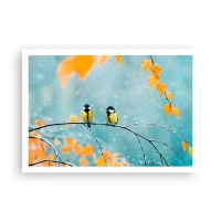 Poster în ramă albă - Bârfele păsărilor - 100x70 cm