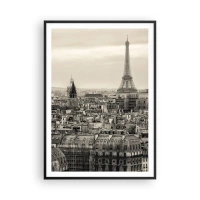 Poster în ramă neagră - Deasupra acoperișurilor Parisului - 70x100 cm