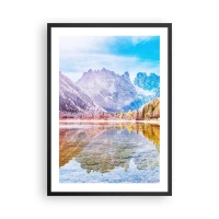Poster în ramă neagră - Peisaj montan cu un lac și culori de toamnă - 50x70cm - Iar în munți începe toamna - Decorațiune modernă pentru perete pentru living și dormitor ARTTOR