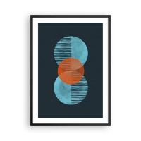 Poster în ramă neagră - Cercuri simetrice în nuanțe de albastru și portocaliu cu linii - 50x70cm - Compoziție simetrică - Decorațiune modernă pentru perete pentru living și dormitor ARTTOR