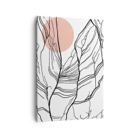 Poster în ramă neagră - Artă minimalistă cu un cerc roz în fundal - 50x70cm - Într-o rețea de crengi - Decorațiune modernă pentru perete pentru living și dormitor ARTTOR