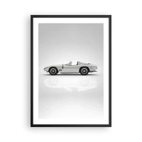 Poster în ramă neagră - Cabriolet alb clasic pe fundal neutru - 50x70cm - Promisiunea distracției - Decorațiune modernă pentru perete pentru living și dormitor ARTTOR
