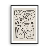 Poster în ramă neagră - Abstracție modernă sub forma unei linii negre pe un fundal bej - 50x70cm - Pe traseu - Decorațiune modernă pentru perete pentru living și dormitor ARTTOR