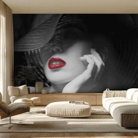 Tapet Standard Eco - Studiu în stacojiu - Femeie, buze rosii, Modă - 250x175 cm