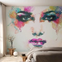 Tapet Standard Eco - Portret pictat cu un curcubeu - Abstracția, Chipul de femeie, Bucată - 250x175 cm
