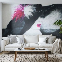 Tapet Premium Canvas - Întotdeauna un mister - Femeie În pălărie, Chipul de femeie, buze rosii - 100x70 cm