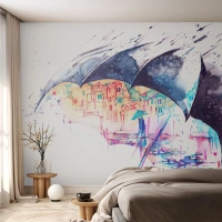 Tapet Premium Canvas - Plimbare în ploaie - Abstracția, Umbrelă, Arhitectură - 100x70 cm