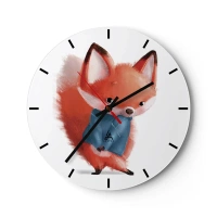 Ceas de perete - Ceas pe sticlă - O vulpe drăguță într-o eșarfă albastră pe fundal alb - 30x30cm - Îmi vine bine? - Decorațiune modernă pentru perete pentru living, bucătărie și dormitor ARTTOR
