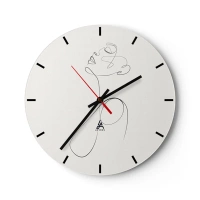 Ceas de perete - Ceas pe sticlă - Un profil feminin realizat cu o linie neagră pe un fundal deschis la culoare - 30x30cm - Încâlcită în vise - Decorațiune modernă pentru perete pentru living, bucătărie și dormitor ARTTOR