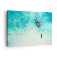 Tablou pe pânză Canvas - Bărci pe ape turcoaz văzute din perspectiva unei păsări - 70x50cm - Pe plajele din Zanzibar, când apele în exces... - Decorațiune modernă pentru perete pentru living și dormitor ARTTOR