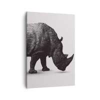 Tablou pe pânză Canvas - Siluetă grafică a unui rinocer într-un model alb-negru - 70x50cm - Frumusețea geometrică a naturii - Decorațiune modernă pentru perete pentru living și dormitor ARTTOR