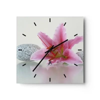 Ceas de perete - Ceas pe sticlă - Studiu în roz, gri și alb - 40x40 cm