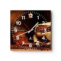 Ceas de perete - Ceas pe sticlă - Natură moartă cu boabe de cafea și măcinător - 30x30 cm