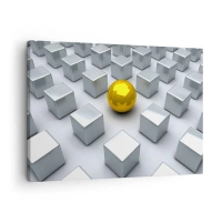 Tablou pe pânză Canvas - O sferă aurie iese în evidență printre cuburile de argint - 70x50cm - De ce eu? Compoziție geometrică - Decorațiune modernă pentru perete pentru living și dormitor ARTTOR