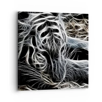 Tablou pe sticlă - Tigru abstract în linii luminoase pe fundal negru - 70x50cm - Un studiu al lejerității felinelor - Decorațiune modernă pentru perete pentru living și dormitor ARTTOR