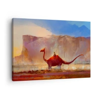 Tablou pe pânză Canvas - O scenă fantastică cu un călăreț pe o creatură preistorică - 70x50cm - Dacă nu ar fi dispărut - Decorațiune modernă pentru perete pentru living și dormitor ARTTOR