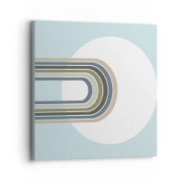 Tablou pe pânză Canvas - O compoziție minimalistă cu un cerc și linii pe un fundal pastel. - 70x50cm - Atracție irezistibilă - Decorațiune modernă pentru perete pentru living și dormitor ARTTOR