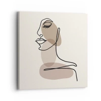 Tablou pe sticlă - Portretul unei fețe de femeie într-un stil minimalist, abstract - 70x50cm - Ascultându-se pe sine - Decorațiune modernă pentru perete pentru living și dormitor ARTTOR
