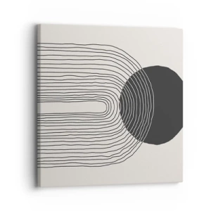Tablou pe pânză Canvas - Model abstract cu linii și un cerc negru pe un fundal deschis - 70x50cm - Tremurând și încrezător - Decorațiune modernă pentru perete pentru living și dormitor ARTTOR