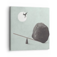 Tablou pe pânză Canvas - O scenă simbolică cu o figură și un echilibru pe un cer luminos. - 70x50cm - Visul îndeplinit - Decorațiune modernă pentru perete pentru living și dormitor ARTTOR