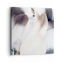 Tablou pe pânză Canvas - Prim-plan al unor pene delicate în nuanțe de alb și gri - 70x50cm - Aproape angelice - Decorațiune modernă pentru perete pentru living și dormitor ARTTOR